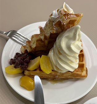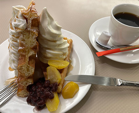 生クリームたっぷりのワッフルやパフェ等、リーズナブルで色々なメニューがあります