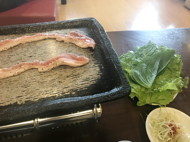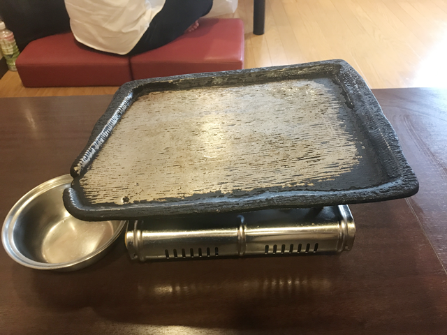 サムギョプサルを焼く鉄板は斜めになっていて油がたまらないようになっています。