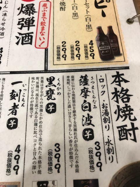 入口で手の消毒、検温を済まし、席に着き、とりあえず、芋焼酎のロック、そして、あてを注文し、美味しくいただきました。