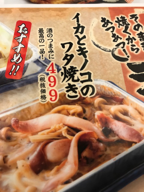 今日注文したイカとキノコのワタ焼き、おすすめメニューです。