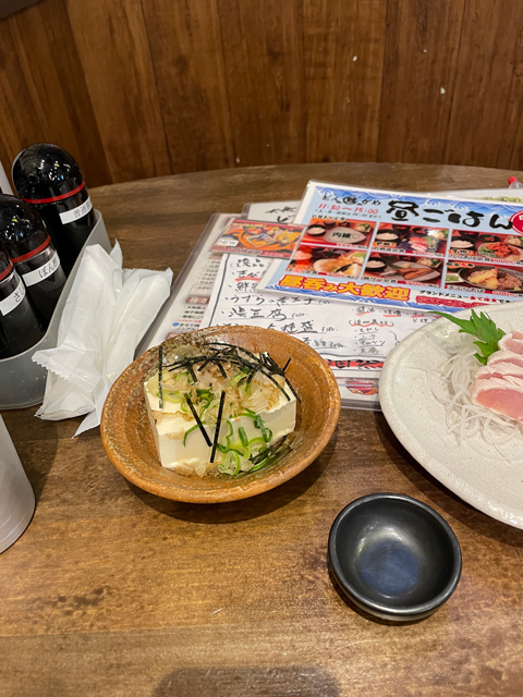 追加で、ささみの刺身など、あてを数品、注文しました。