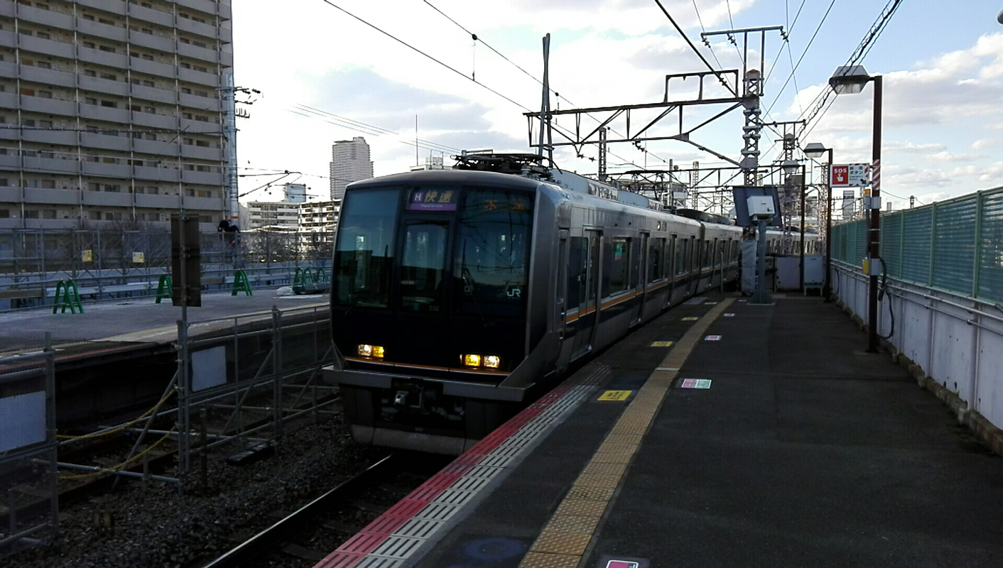 鴫野駅を通過する321系電車。2016年3月撮影。