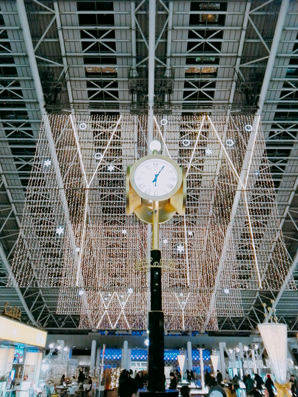 大阪駅の大屋根。空港でよく見る形ですね。夜になるとイルミネーションが見れることも?