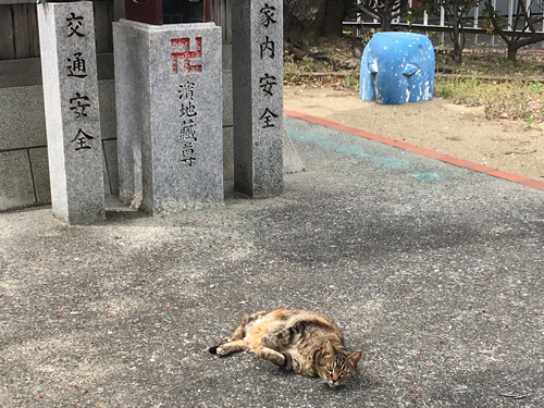 最初の写真の公園近くにお地蔵さんがありまして、この猫さんはたいていその周辺でゴロゴロしてます。