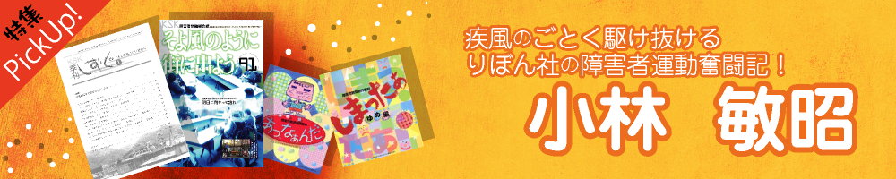 今回は、出版社、りぼん社をご紹介いたします。障害者問題総合誌「そよ風のように街に出よう」を38年にわたり出版し、その後障害者問題を取り上げた同人誌「季刊しずく」の発行や、絵本の出版などを行っている出版社です。そんなりぼん社のさまざまな魅力をお伝えできればと思います。今回はその中心人物、小林敏昭さんが様々な思いや魅力を語ります。