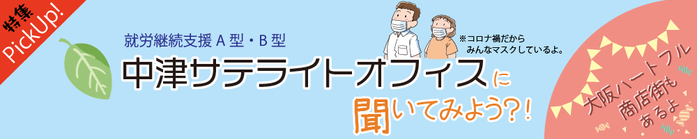今回は、大阪で有名な、就労移行支援A型・B型の中津サテライトオフィスの特集です。どんな感じでどんな所でしょうか?また、「大阪ハートフル商店街」って何でしょうか?施設長を務める岡本さんと、大阪ハートフル商店街担当のYさんにインタビューしてみました。