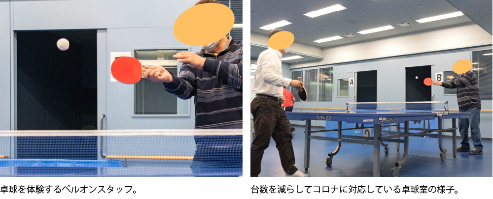 施設内で一番人気のあるスポーツ。コロナの前は卓球台が5台ありました。現在は4台で対応。若い人からご年配の人まで幅広い男女の方が利用されています。視覚障害者を対象にした「サウンドテーブルテニス(ボールの中に金属球が4つ入っており、音が鳴ることでプレイできる)」も利用可能です。