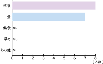 グラフを見ると、食事の際、気をつけている方は、「栄養」や「量」を重視しておられることがよくわかります。